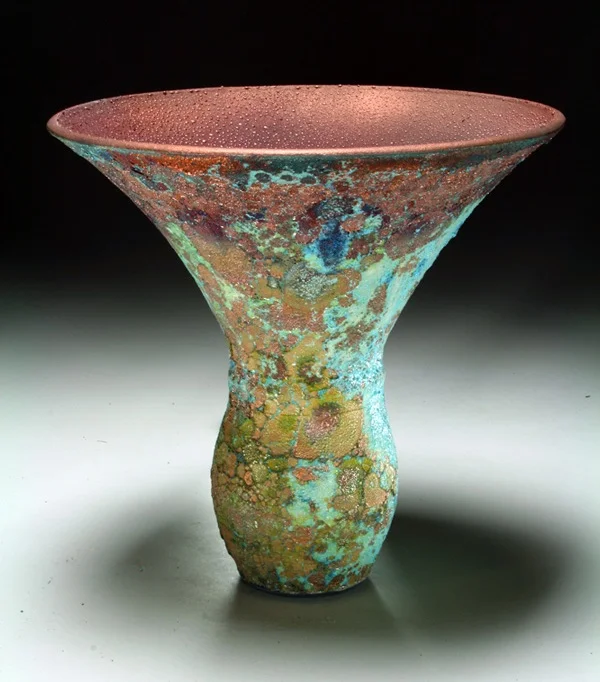 Over the years, we have constantly been blown away by the quality, colors and formations of the many raku pottery vessels, sculpture and wall pieces done by Steven Forbes-deSoule.